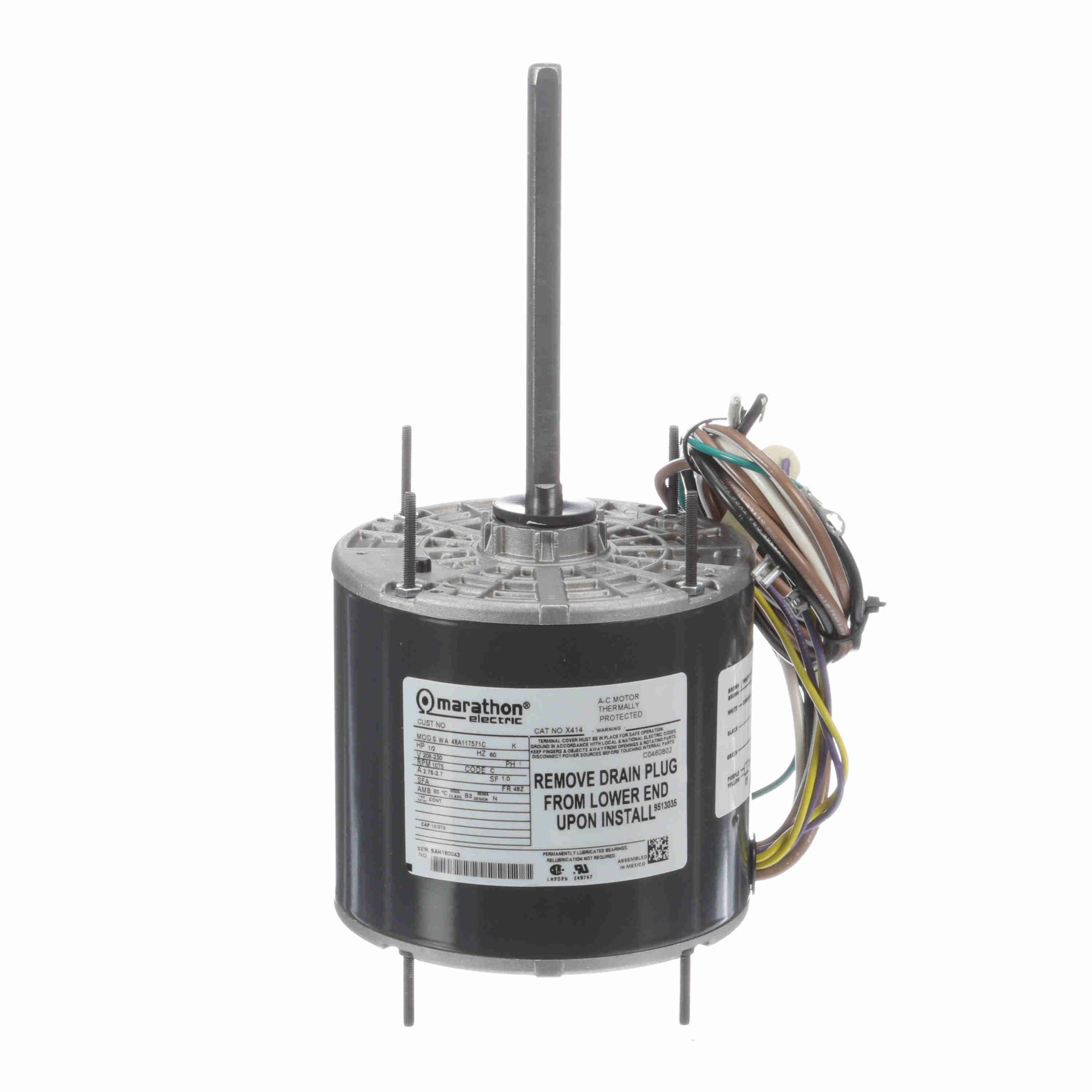 Marathon 1/2 HP, 208-230V, 1 PH, 1075 RPM, Frame 48Z, Condenser Fan Motor